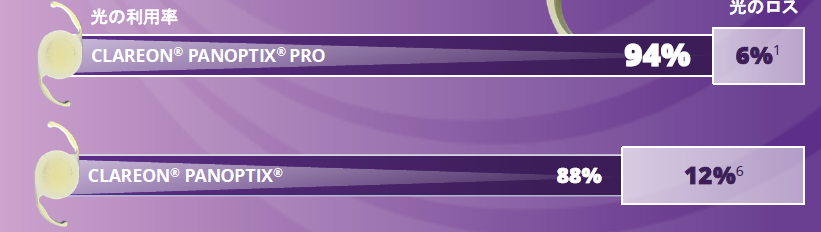 従来のPanOptix®の88%と比較して、光のロスを半分(12%から6%へ)に軽減することに成功しました。